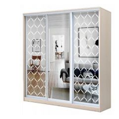 Фасад: 1 дверь Зеркало + 2 двери Зеркало с пескоструйной обработкой