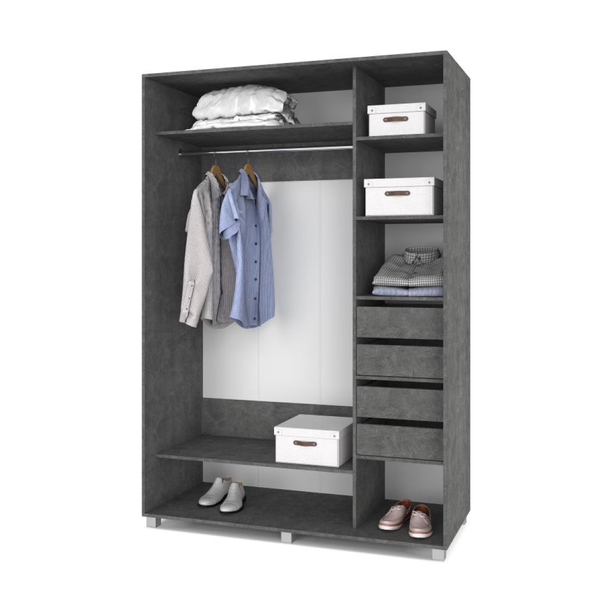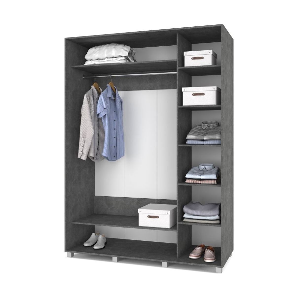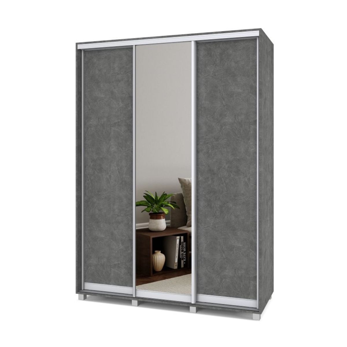 РОЛАНД Шкаф-купе с зеркалом Камень темный (600*1600) Р662